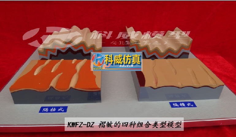 | KWDZ-74 | 褶皺按橫剖面的五種形態(tài)模型 | 1.5件/套,每件規(guī)格220×220×500,(規(guī)格單位為毫米); ★2.直立、傾斜、倒轉(zhuǎn)、平臥、翻卷五種; 3.有機玻璃成型,斷面分色,文字標(biāo)注。 | 5件/套 | 1 |