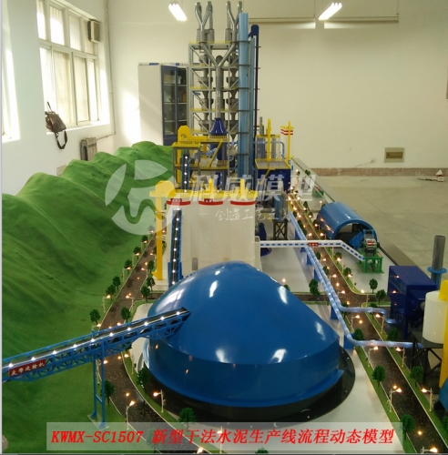 該模型根據客戶的需求,并參照新型干法水泥生產線廠區(qū)建筑總平面布置圖,按1:30(約)的模型比例微縮進行制作,模型可以完整顯示整個水泥生產線工藝流程,包括廠區(qū)環(huán)境以及工廠各單元生產設備的分布設施整體展現。